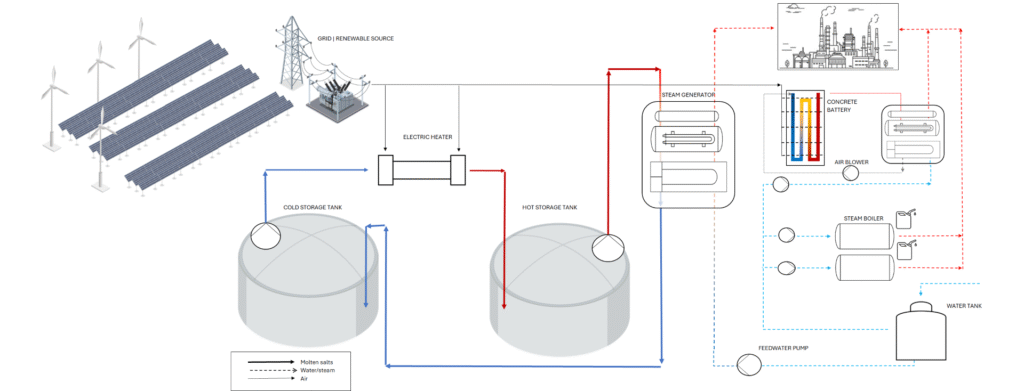 - Desarrollo del sistema para descarbonizar procesos industriales, favoreciendo la integración de energías renovables y contribuyendo a una reducción significativa de emisiones de CO₂.